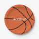 Fun party paper plates featuring an illustration of basketball. Personalise them with your child's name and text of your choice for a complete one of a kind look.