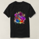 I give wanted to give this a 4 instead of a 5 because these Basic DARK T0shirts run unexpectedly SLIM or Narrow. Which is great if you do not have a potbelly, but I have a paunch. It isn't the shirt's fault that I've got a beer belly. The design and shirt itself is a quality cotton shirt. The color is more of a deep purple, but still a very pretty color. The Basic DARK T-shirts run a bit SLIMMER than the Basic Ts. The neck is a fraction narrower (or seems to be narrower) also. I'm a paunchy middle-aged woman and my neck is 12 inches (31cm) thick and the neckline fell about the same as in the photo of the man, and I had the desire to tug it a bit. So if you're a thick necked man or like loose shirts, be aware these are slimmer shirts. Once I get rid of my lockdown paunch it'll look great. The shirt washed well in cold water with no apparent bleeding. We don't have a dryer, so it hung dry. Did not shrink. Love the colors and the design. The design looks smaller on my shirt than it does on the model on-line. But still, it looks good on the shirt. The printing looks as it does on the model, just the size seems fractionally smaller. Washed garment in cold water, hung dry and design appeared unaffected.