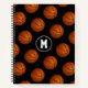 This basketball spiral notebook features a pattern of basketballs on a black background - customise with monogram - by katz_d_zynes