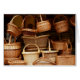 Photograph of several baskets hung and displayed for sale. Photograph by Hans Braxmeier.