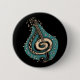Comix bass guitar, shaped like a treble clef, surrounded by musical notes, on a blue-green pear-shape. Ink drawing with digital colour, t-shirts, sweats, cards, mugs, gifts.