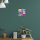 Do you like music themed art? This poster has a pattern of bass clefs done in purple, yellow, green, blue and pink.