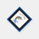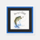 Jumping large mouth bass after fly fishing lure out of a blue water splash. Inner black ring and out blue ring that matches the colour of the water. Simply edit the text with your birthday guy's name and age! Bass hand drawn by artist ©Tina Hesskew of Fishing Hunting Life.