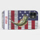 Patriotic design with USA flag in grunge style with mean looking large mouth bass jumping. Customise with your name of that of your recipient.