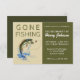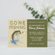 Gone fishing retirement invitation announcement card. Customise with your party's information. Matches this return mailing address label: https://www.zazzle.com/jumping_bass_return_address_label-106976983984698598
