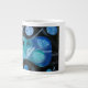 An original spacepainting by Susan L. Marsh featuring a bass guitar shape with blue and green planets against a starry black background.