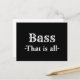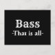 A funny Bass slogan design in white ink on dark background that says "Bass - That Is All".