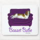 Beautiful Basset Hound lounging on purple couch!