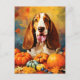 A Colourful autumn and thanksgiving portrait of a Basset Hound.