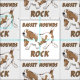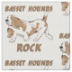 A cute, cartoon style illustration of a basset hound walking. The brown and white dog has the text, BASSET HOUNDS ROCK. A design for dog lovers.