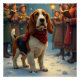 A delightful painting featuring a Basset Hound joining Christmas carolers on a snowy street. This nostalgic and festive scene brings the magic of holiday music and togetherness to life.