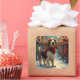 A delightful painting featuring a Basset Hound joining Christmas carolers on a snowy street. This nostalgic and festive scene brings the magic of holiday music and togetherness to life.