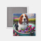 Basset Hound Dog on a Paddle: A Scenic Adventure Magnet