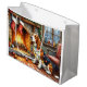 Basset Hound Fireplace with Christmas Lights Large Gift Bag