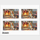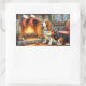 Basset Hound Fireplace with Christmas Lights Rectangular Sticker