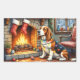 This cozy Christmas illustration showcases a lovable Basset Hound sitting beside a warm fireplace, wrapped in twinkling Christmas lights with festive stockings hanging above. The breed’s signature long ears and gentle expression add extra charm to this heartwarming holiday scene. Ideal for Basset Hound lovers, seasonal décor fans, and Zazzle shoppers searching for unique Christmas art featuring their favorite breed.