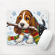 Basset Hound Puppy in Snow With Scarf and Branch Mouse Mat