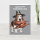 The image is generative content. I enjoy making basset hounds holding things in their mouth so I thought why not have the basset hound wearing a pilgrim hat and holding a turkey in its mouth for a thanksgiving design. The text on the front of the card and inside is able to be edited so you came personalise the design.