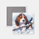 Basset Puppy Playing With a Stick in Winter Snow Magnet