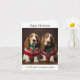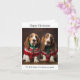 Bassett Hound puppies, wearing their best Christmas jumpers, wish you a Happy Christmas - PS: Tell Santa they've beend very good. They don't want to miss out on their Christmas treats!