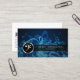 This dark themed bassist business card features a chrome icon of a bass clef enclosed within a chrome circle over a dark background of jumbled music notes. Your business name and text/tagline appear within a black text panel strip that runs from the icon from the left towards the right edge of the card. The background of the card consists of a dark themed grunge pattern. Your contact details appear on the lower left on the back of the card. Perfect for music, musician, entertainment, show business, arts, artistic, professional, impact, dark themes.