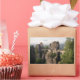 Rectangular photo sticker of the stone Bastei Bridge (Bastei Brücke) over the Elbe river connecting the iconic rock formations of the Elbe Sandstone Mountains near Dresden in the national park Saxon Switzerland (Sächsische Schweiz) in east Germany.