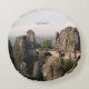 Round throw pillow with the stone Bastei Bridge (Bastei Brücke) over the Elbe river connecting the iconic rock formations of the Elbe Sandstone Mountains near Dresden in the national park Saxon Switzerland (Sächsische Schweiz) in east Germany.