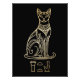 Stylised minimalist golden Bastet, the Ancient Egypt Cat Goddess with her name written in hieroglyphs.