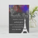 Fireworks and the Eiffel Tower on a blackboard make this fun invitation.
