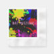 Matching napkin for the Bat Mitzvah Invitation that I also have in my store. Text can be easily change to Bar Mitzvah. Bright neon colours with a paintball theme. INVITATIONS, MATCHING TABLE NUMBER CARDS, THANK YOU CARDS AND STAMPS ALSO AVAILABLE. Choose White or Ecru.