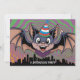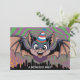 Bat flying above psychedelic city invitation