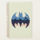 Round Bat Logo with Gotham City skyline and Bat Signal in the sky.