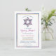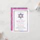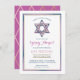 This modern and trendy Bat Mitzvah invitation features a purple, pink and navy blue Star of David with gold accents and a matching border. The text and background colour can be customised to our liking for your daughter's special event.