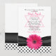 Classy, girly black and white polka dot, ribbon, and pink gerbera daisy Bat Mitzvah invitation with Jewish Star of David.