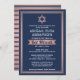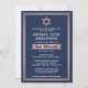 Invite family and friends to an elegant bat mitzvah ceremony and celebration with a stylish custom navy blue, white, and pink rose gold invitation. All text on this template is simple to customise with any wording regarding the service, Torah reading, and party. The design features trendy faux rose gold foil Star of David, classic vintage art deco typography, and modern script calligraphy. Mazel Tov!