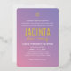This is one of my designs and I just had to see how the new foil-stamped cards looked in person. I'm so glad I did as I am VERY happy with how this looks in person. Since the foil is stamped on the card, it has almost an embossed feel to the foil as it is raised slightly above the background. If you want this is another color combination, please contact me. It printed out exactly as I had wanted it to. All the lettering is readable but the thin parts of the font I used are a little harder to read so I may update the invitation to use a different/heavier-weight font so that it stands out more. The @ symbol in the email address on the template text is barely noticeable using the sample font so a different font might be better if you plan on adding the RSVP info.