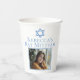 This light blue Bat Mitzvah party paper cup has a beautiful, artistic Star of David drawing at the top. Complete the decor with your personalised name and photo.