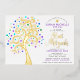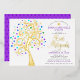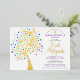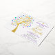 Be proud, rejoice and showcase this milestone of your favourite Bat Mitzvah! This graphic real gold foil tree with sparkly turquoise, teal, purple and blue Star of David and dot “leaves” on a white background is the perfect invitation for this special occasion. A tiny, dark purple Star of David pattern overlaying lighter purple is on the back. Personalise the custom text with your Bat Mitzvah’s name, Hebrew name, date, and venue information. Choice of gold, rose gold, or silver real foil. Guaranteed to add stylish fun to her special occasion!
