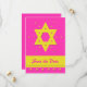 Stunning bat mitzvah save the date invitation card featuring a yellow Star of David on a pink background. Copyright henishouseofpaper