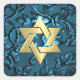 Bat Mitzvah Teal Blue Damask with Gold Square Sticker