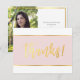 A simple "thanks" in faux gold foil, handlettered script type with photo and your message on the back - a simply perfect THANK YOU for your event