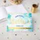 Let your favourite Bat Mitzvah be proud, rejoice and celebrate her milestone with this stunning keepsake scrapbook real gold foil guestbook. On the front, stunning, modern, sparkly gold foil handwritten script, Star of David and tiny dots overlay a turquoise blue watercolor background. The customisable spine is real gold foil. And on the back, additional real gold foil confetti and Star of David overlay turquoise blue watercolor. Personalise the custom text with her name and date of event. Choose from 3 real foil colours (gold, silver and rose gold), 3 sizes (9”x6”, 10.5”x8.25” and 12”sq) and 3 papers (blank white, lined white and black). Guaranteed to add stylish memories of her occasion. Matching and coordinating invites, envelopes, address labels, stickers, napkins and other Bat Mitzvah goodies are also available in this trendy and special collection.