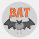 A black Halloween bat and orange text that reads "BAT" on bat t-shirts, bodysuits, mugs, cards, stickers, tote bags, buttons, magnets, and other Halloween BAT T-shirts and gifts.