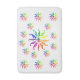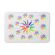 Colour wheel created with rainbow coloured graphic leaves. Large wheel in centre, smaller motifs arranged around this in a circle. Three motifs in medium size are set in two horizontal lines at sides. ***Part of coordinated set - BKM1c.