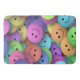 Bath Mat Faces Give your feet a sweet treat right after your bath. Featuring a luxury soft memory foam, this bath mat cushions your feet and helps you feel great while you dry off and get ready to face the day. Made out of high density memory foam, this soft rug cushions your feet and feels great while you dry off and get ready for the day. Dimensions: 16” x 24” Material: 85% polyester/15% polyamide. Quick-drying foam core. SBR non-skid backing. Machine washable. Warning: For use outside of the tub. Always place bath rugs on a dry surface before use.