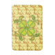 Ivy leaves in orange on pale yellow background. Four solid individual leaves (in yellowish green) have tips meeting at centre. Outlines of single leaf is replicated to intertwine as a background.