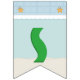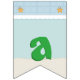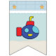 Splash into some fun with this bath time themed design featuring a smiling shark and big round sub floating along in a bathtub that transitions from the mundane blue tile wall, decorated with orange starfish, to a sandy ocean bottom mimicking the fanciful imaginings of a child playing with toys. Customise the seaweed themed message on the banner with your soon-to-be little one's gender or a message of your choice to create a truly unique party decoration for your baby shower. This can easily be changed between "boy!", "girl", and "baby", and if you're having twins or other multiples, just click the "Customise It" button for more options.