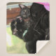 The fabric is really soft, and thick, I’m sitting here with it wrapped around me and it’s so warm! It’s really smooth and sleek on the printed side and fluffy on the back. I love it! Such good quality, so vibrant and clear, not blurry at all! See the photos I’ve attached, there’s no filters or anything on them!