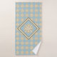 This intricate Bath Towel matches an amazing Shower curtain. It has lacey cream medallions in shades of cream on a sky-blue background. The design is reminiscent of a Persian rug. The back side Has repeating medallions laid diagonally. The Medallions images come from an actual handmade tile by Oregon tile maker Fay Jones Day.