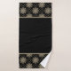 This dramatic Bath towel features intricate Sepia-toned medallions on black. This was designed to coordinate with a Shower curtain and bathmat with the same design. The medallions come from an actual tile design by Oregon tile maker Fay Jones Day.